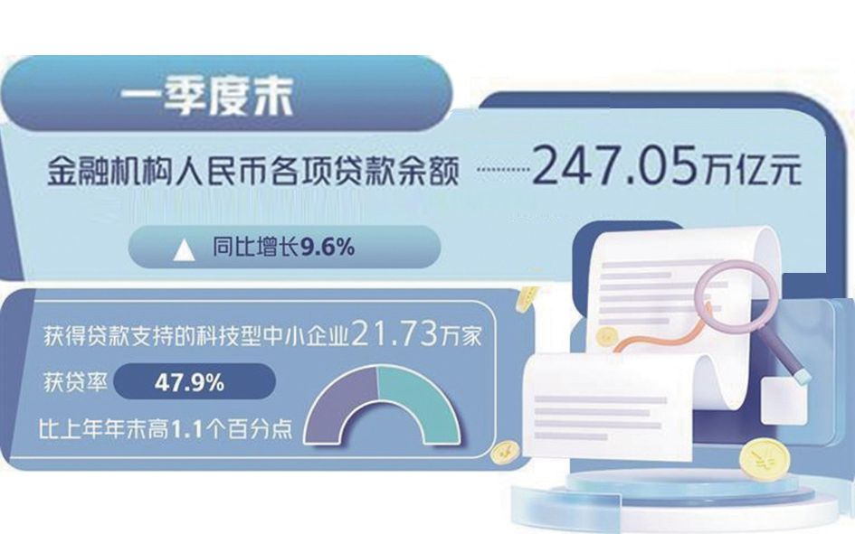 此外,贷款支持科创企业力度较大。一季度末,获得贷款支持的科技型中小企业21.73万家,获贷率47.9%,比上年年末高1.1个百分点。科技型中小企业本外币贷款余额2.7万亿元,同比增长20.4%,比同期各项贷款增速高11.2个百分点。