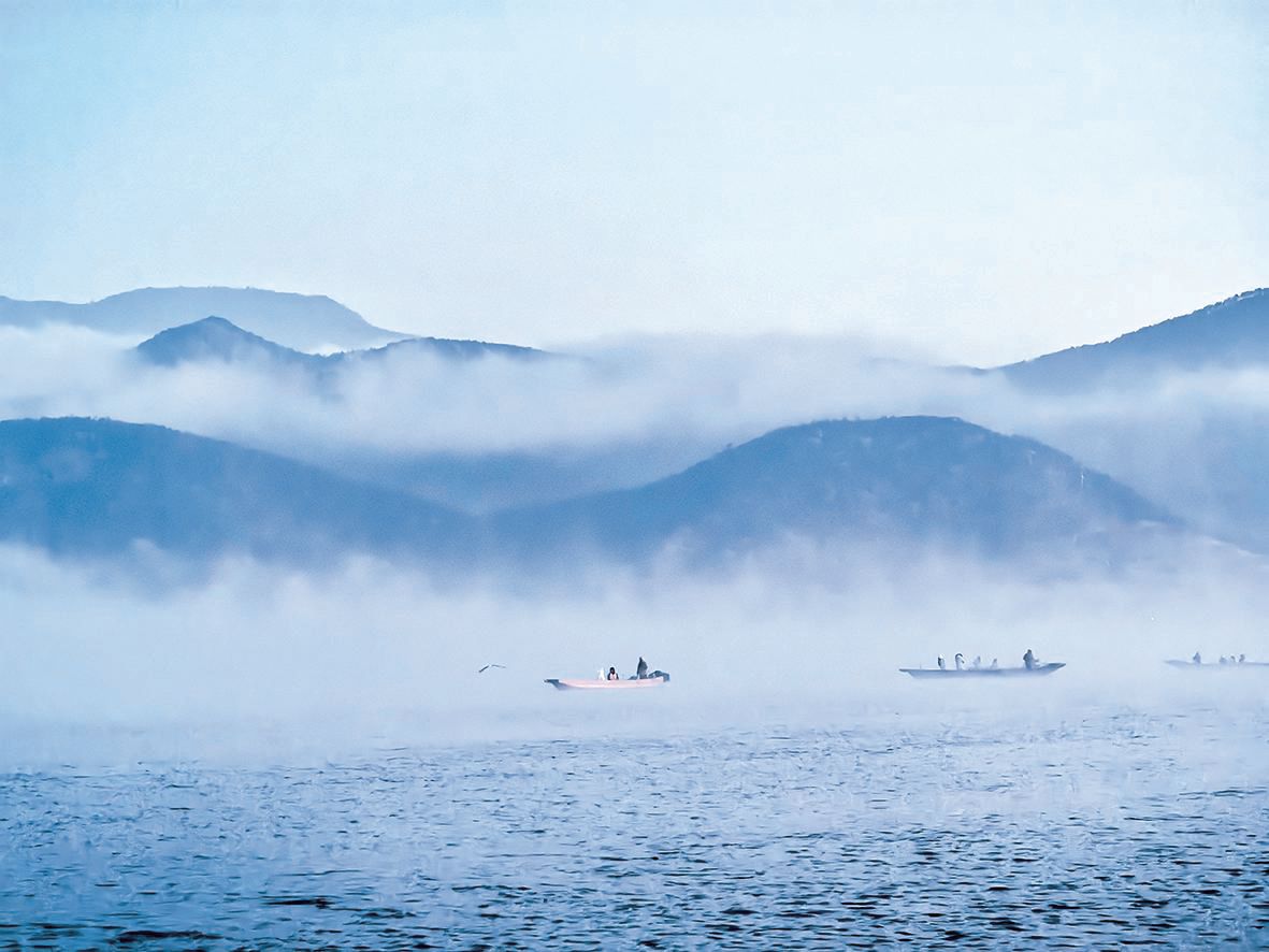 这大概就是传说中的瑶池仙境,是神仙方配栖居的天地吧!当小船拨开云影缓缓前行,人在天光水色中徜徉时,方才懂得人间风景竟能美得如此惊心动魄。都说泸沽湖是遗落在人间的仙境,我倒觉得它更像是九天之上的瑶池,是女娲补天时遗落的蓝宝石,被摩梭人世代守护的琉璃盏。此刻独坐船头的我,倒像那个冒昧闯入桃花源的武陵人,在潋滟波光里窥见了永恒的模样。