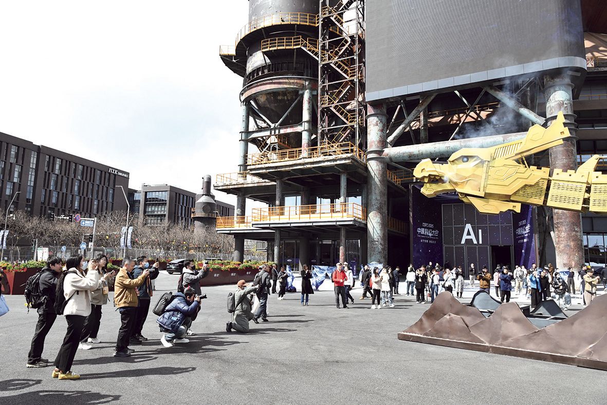 8米高宇航员MOLLY、长城龙、机器狗、无人车、双足仿生机器人……首钢园皆是科幻元素。3月27日,众多媒体记者走进首钢园,探访2025中国科幻大会筹备情况和科幻主题群众性活动等。