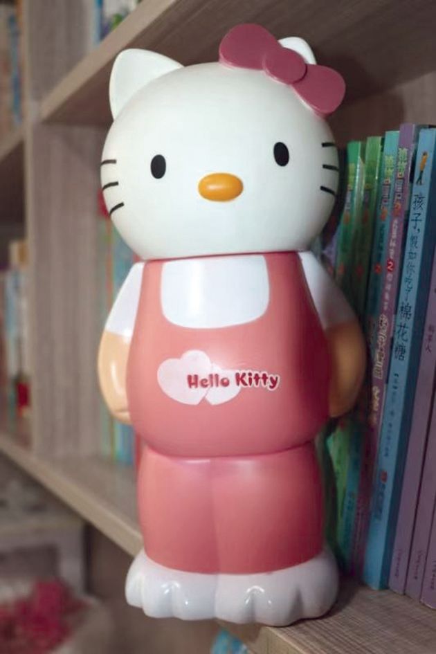 存钱罐是祺祺过生日时同学送给她的礼物——一个长腿HelloKitty样式的瓷娃娃,小小的眼睛、调皮的鼻子、潦草随意的小胡子,再加上粉嘟嘟的肚子,共同勾勒出一副呆萌可爱的模样,我呼之为“小猫”。孩子爱不释手。
