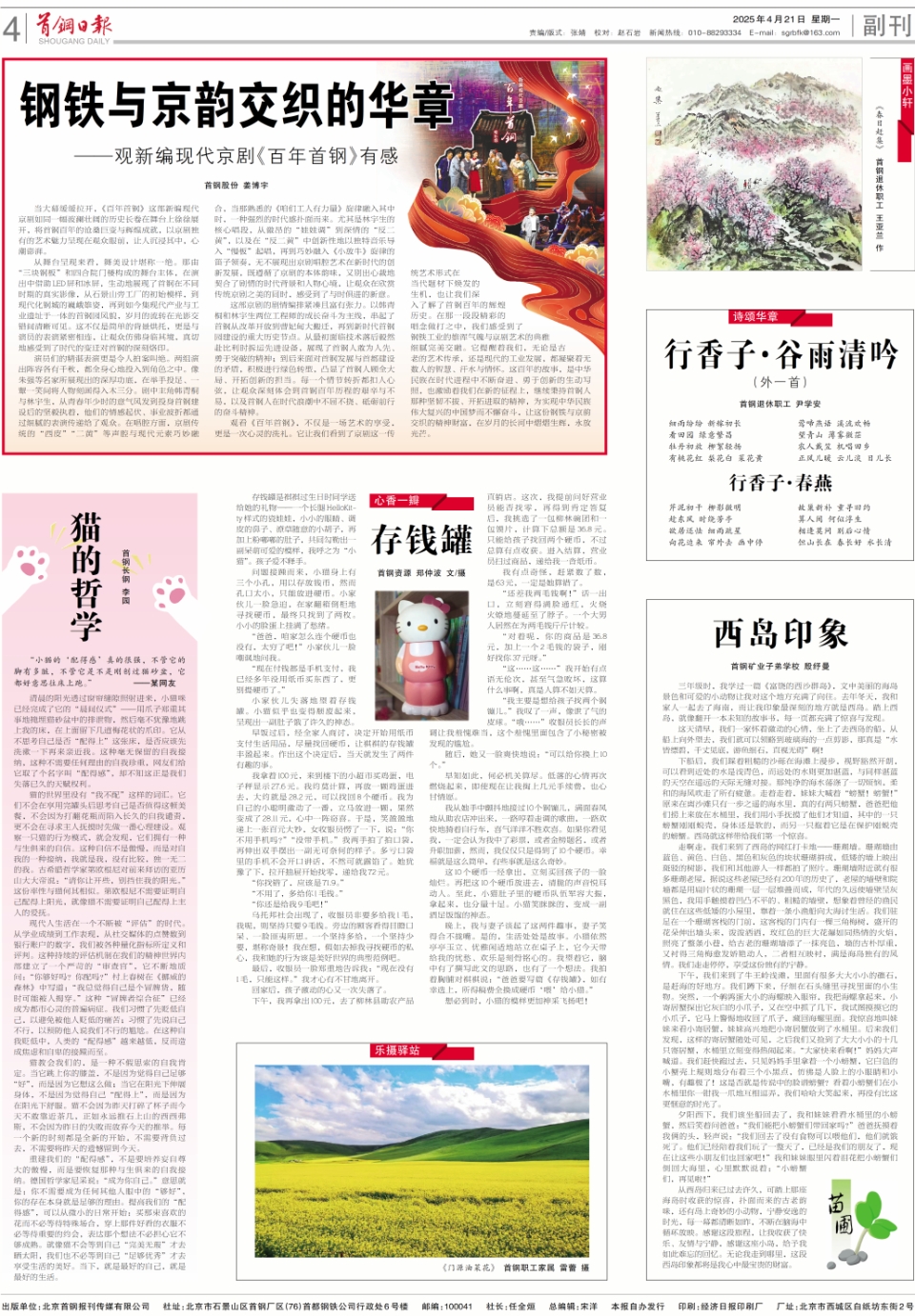晚上,我与妻子谈起了这两件趣事,妻子笑得合不拢嘴。是的,生活处处是故事。小猫依然亭亭玉立、优雅闲适地站立在桌子上,它今天带给我的忧愁、欢乐是刻骨铭心的。我望着它,脑中有了撰写此文的思路,也有了一个想法。我拍着胸脯对祺祺说:“爸爸要写篇《存钱罐》,如有幸选上,所得稿费全换成硬币‘喂’给小猫。”