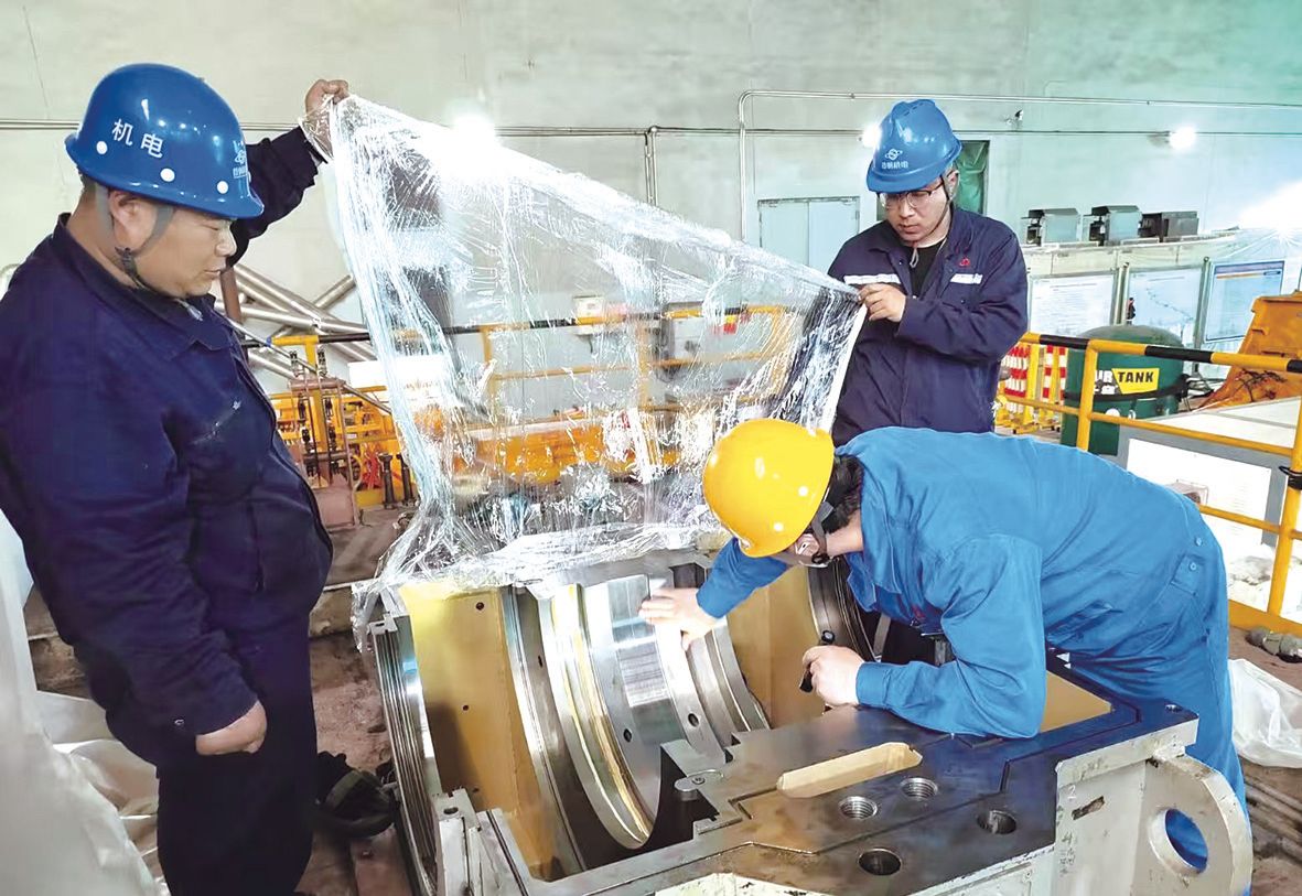 检修团队成员对安装清理后的设备进行复检。 |