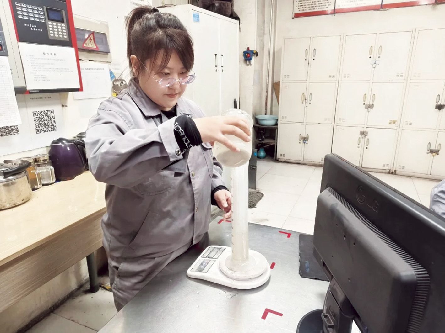 脱硫工作是钢铁企业环保的关键环节,王欣深知这一点。她熟悉每一个运行参数,了解每一台设备的“脾气”。脱硫系统里的设备种类繁多,从大型的脱硫塔到各种泵体、管道,每一个部件都关系着整个系统的稳定运行。每天,王欣总是提前到岗,仔细检查设备,沿着巡检路线,逐一对设备进行查看,眼睛还要紧紧盯着仪表盘上的各项数据,耳朵仔细聆听设备运转时发出的声音,手指轻轻触摸设备外壳感受温度。哪怕是极其细微的异常声响、温度变化或是参数波动,都逃不过她的“火眼金睛”。