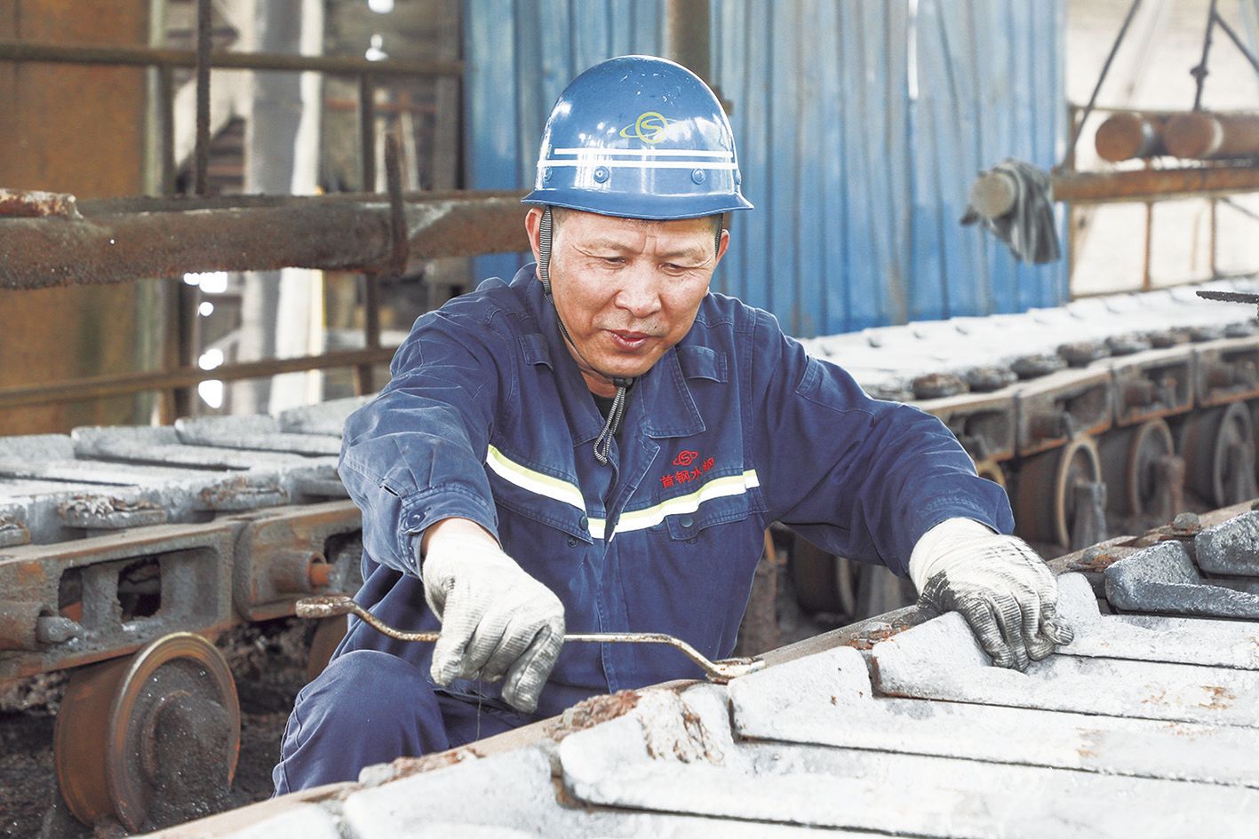 此外,黄云凯还组织对铸铁机进行改造和工艺优化,机时产量大幅提升,机头处的岗位人员由过去4人优化为1人。由其最新制作的敲铁器,能有效降低铸铁机斗模和设备磨损,减少尾部和中部的落铁,实现铸铁机消耗成本降低和工作效率提升。