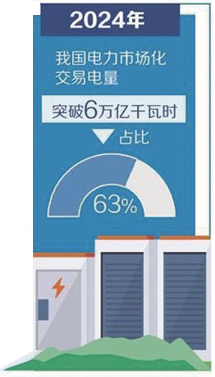 新一轮电力体制改革以来,经过10年的探索实践,我国电力行业“管住中间、放开两头”的行业格局基本形成,多层次多品类多功能的电力市场体系基本形成,实现从“计划电”到“市场电”的重大转型。2024年,电力市场化交易电量突破6万亿千瓦时,占比达63%。国家电网、南方电网在各自经营区内已形成较为完整的电力市场。
