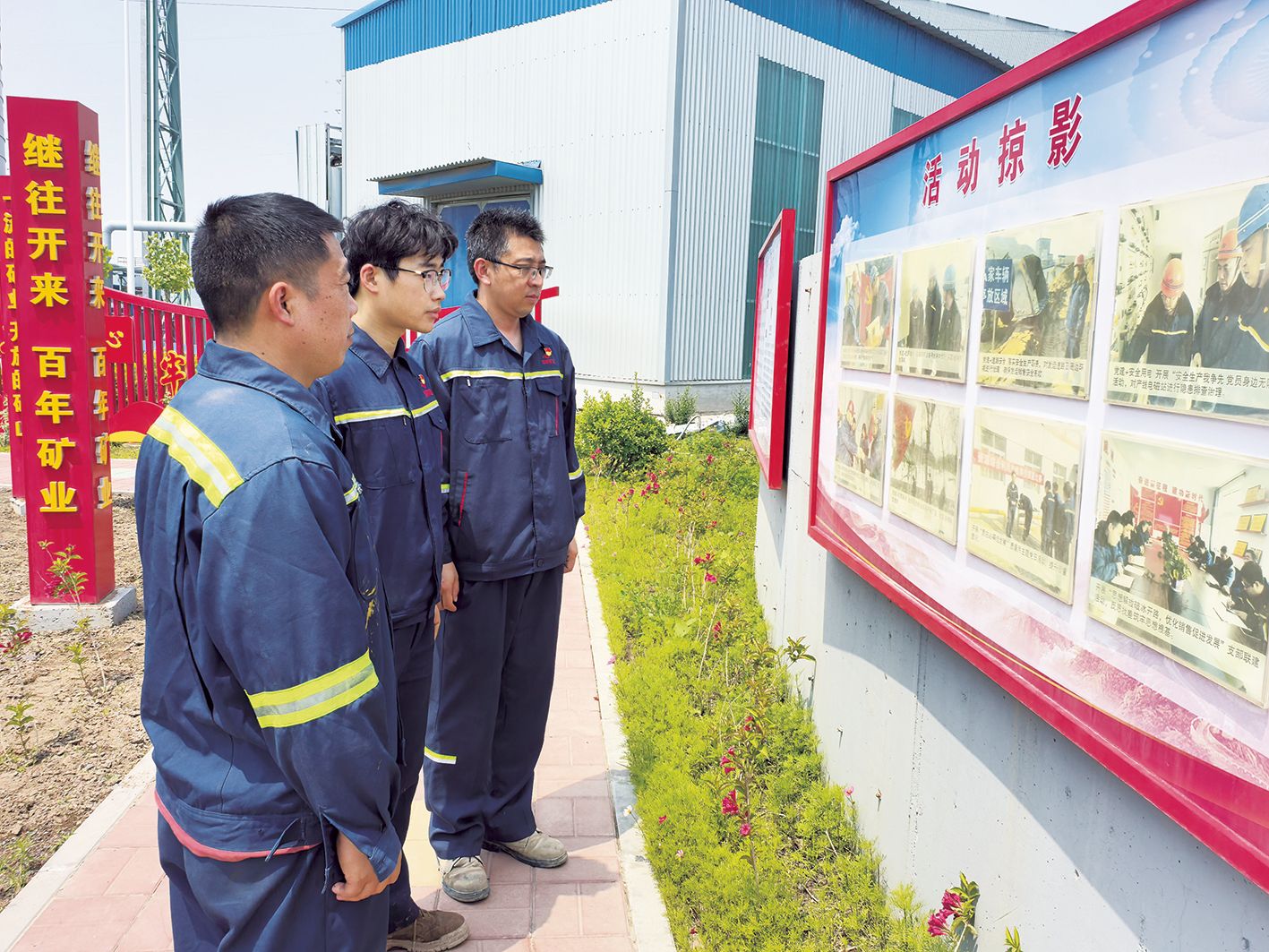 在建材作业区党支部党建小广场,几名职工正驻足观看宣传栏上的“党建+安全”内容。他们边看边交流。“其实党建与安全是互相促进的,党建让安全工作更有效果,安全让党建工作更有的放矢。”一名职工说。