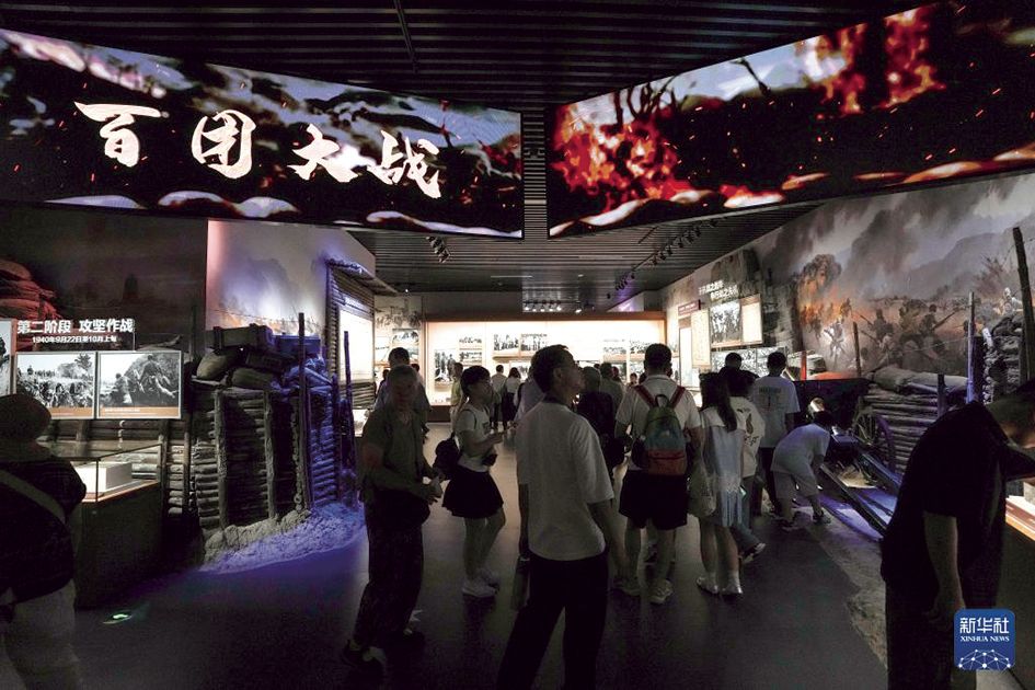 多版本的《论持久战》;抗日根据地群众为部队缝制的草鞋;灯光、布景、音效再现气势磅礴的百团大战……一件件珍贵的文物和影像,生动再现烽火岁月中国共产党秉持民族大义、坚守抗战信念、凝聚人民力量的历史画卷。