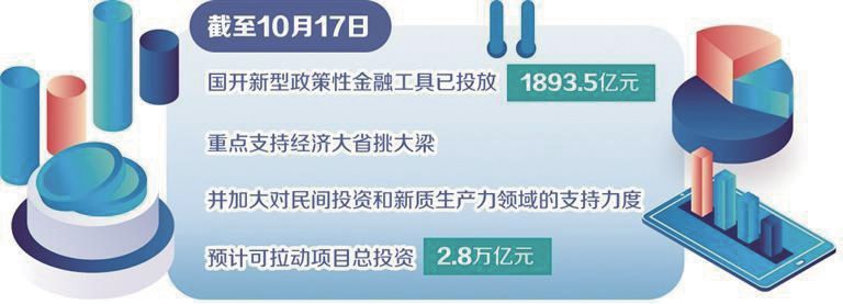 记者从国家开发银行获悉,截至10月17日,国开新型政策性金融工具已投放1893.5亿元,重点支持经济大省挑大梁,并加大对民间投资和新质生产力领域的支持力度,预计可拉动项目总投资2.8万亿元。