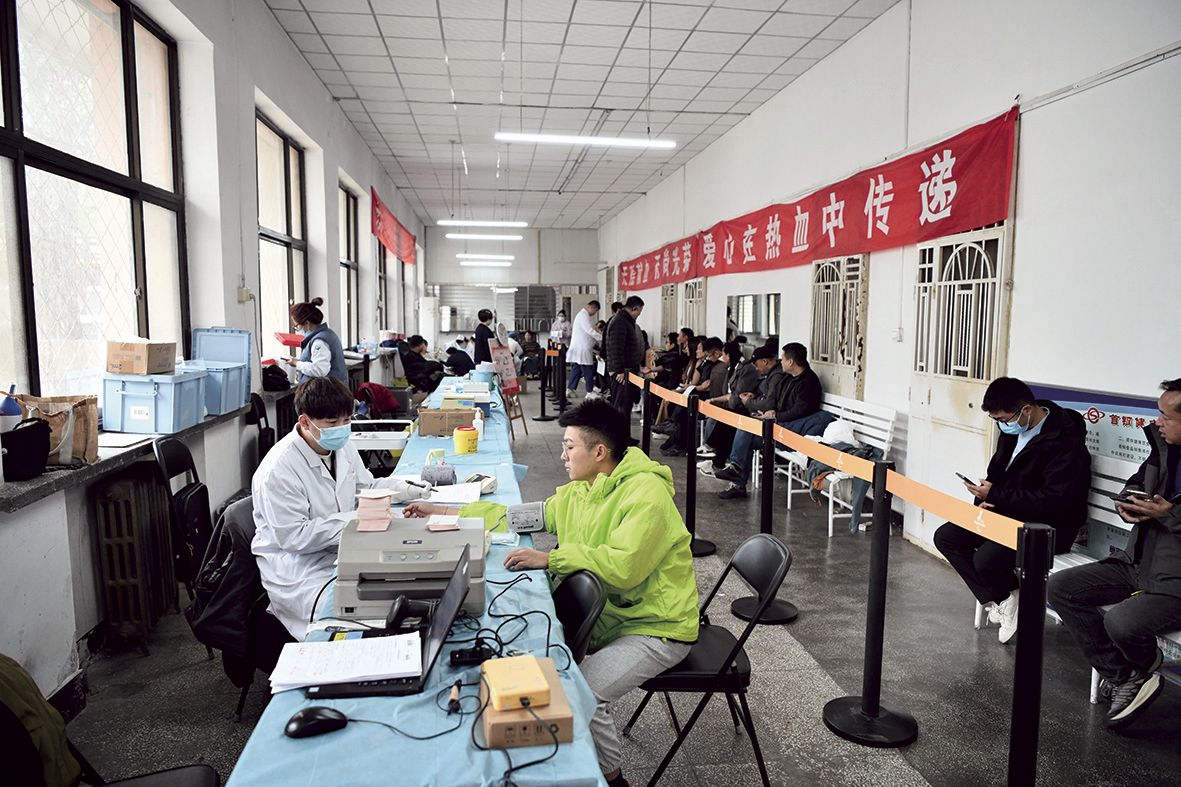 献血大厅内,工作人员和医护人员严格按照操作规范,逐一引导职工填写“献血者健康征询表”、测量血压、抽血化验等,这些满含爱心的血液将传递给急需用血的人,帮助他们点燃生命之火。
