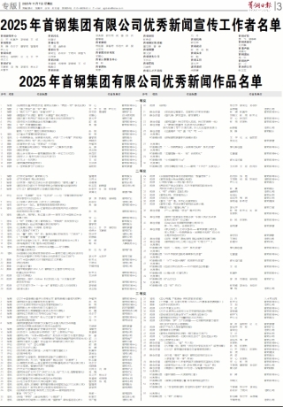 2025年首钢集团有限公司优秀新闻作品名单