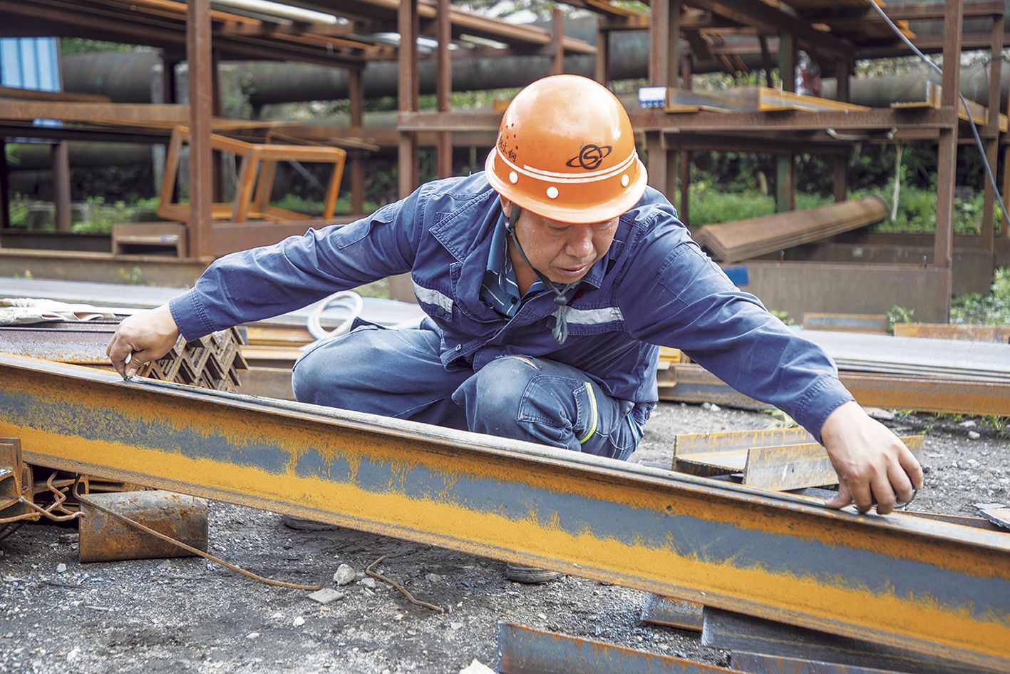当清晨的阳光洒满首钢水钢能源事业部供水作业区后院,这里早已是一派热火朝天的繁忙景象:有人手持卷尺,精准测量每一根备材尺寸;有人紧握气焊枪,切割当天所需的加工件材料;还有人拿着电焊把,将零散的钢架牢牢焊接在一起……自今年8月起,来自供水、供电、热力(燃气)和制氧4个作业区的职工便集结于此,共同投入08变电站供电线路电缆架的加工制作。