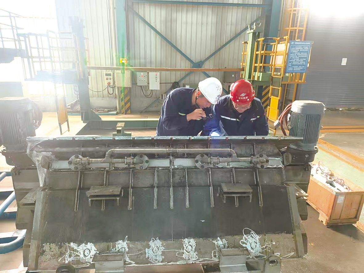 技术人员正在检查上机前的炉鼻子。
