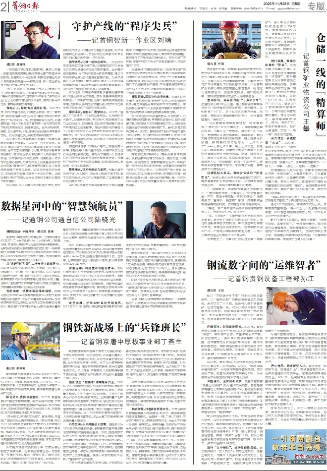 胸前的党徽辉映初心,肩头的责任承载使命。从初出茅庐的青工到独当一面的工匠,刘靖始终以赤诚与担当,在首钢智新的生产一线践行着一名中共党员的职责使命,诠释着新时代首钢“硅钢人”的无上荣光。扎根硅钢产线十余载,他把对党的忠诚、对事业的热爱,深深镌刻在每一组精准的数据中、每一段优化的程序里、每一次成功的攻关里,为企业高质量发展注入源源不断的红色动能。