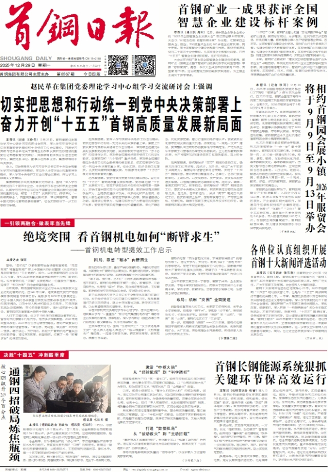 切实把思想和行动统一到党中央决策部署上 奋力开创“十五五”首钢高质量发展新局面