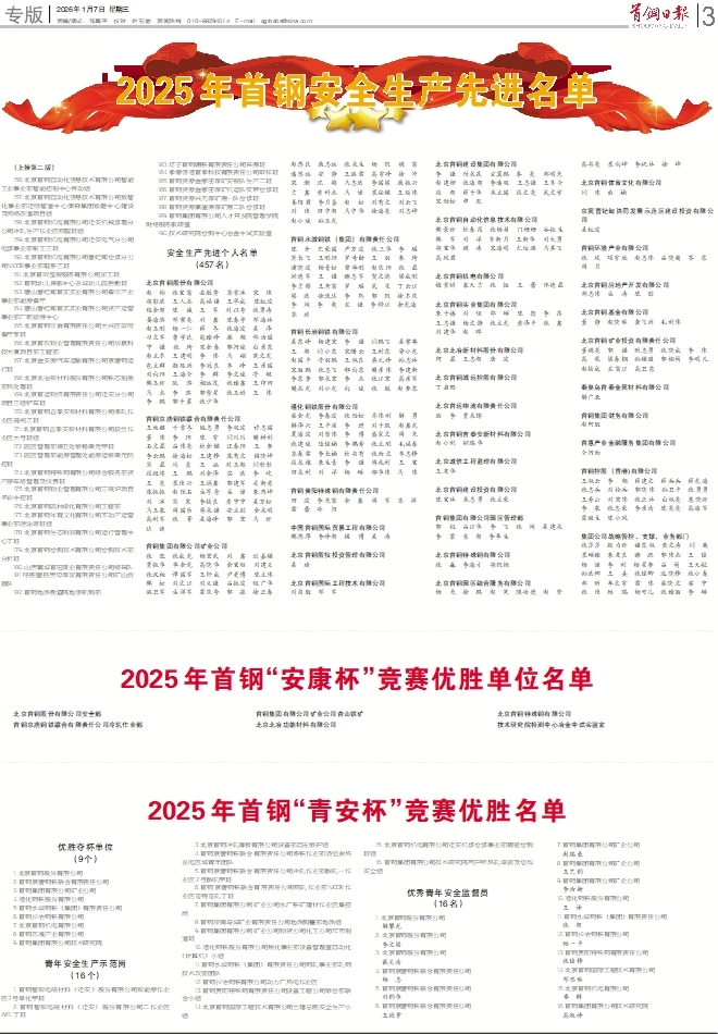 2025年首钢“安康杯”竞赛优胜单位名单