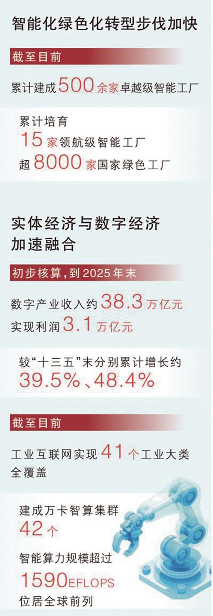 “初步核算,到2025年末我国数字产业收入约38.3万亿元,实现利润3.1万亿元。”张云明说,相比“十三五”末期(2020年)分别累计增长约39.5%、48.4%。