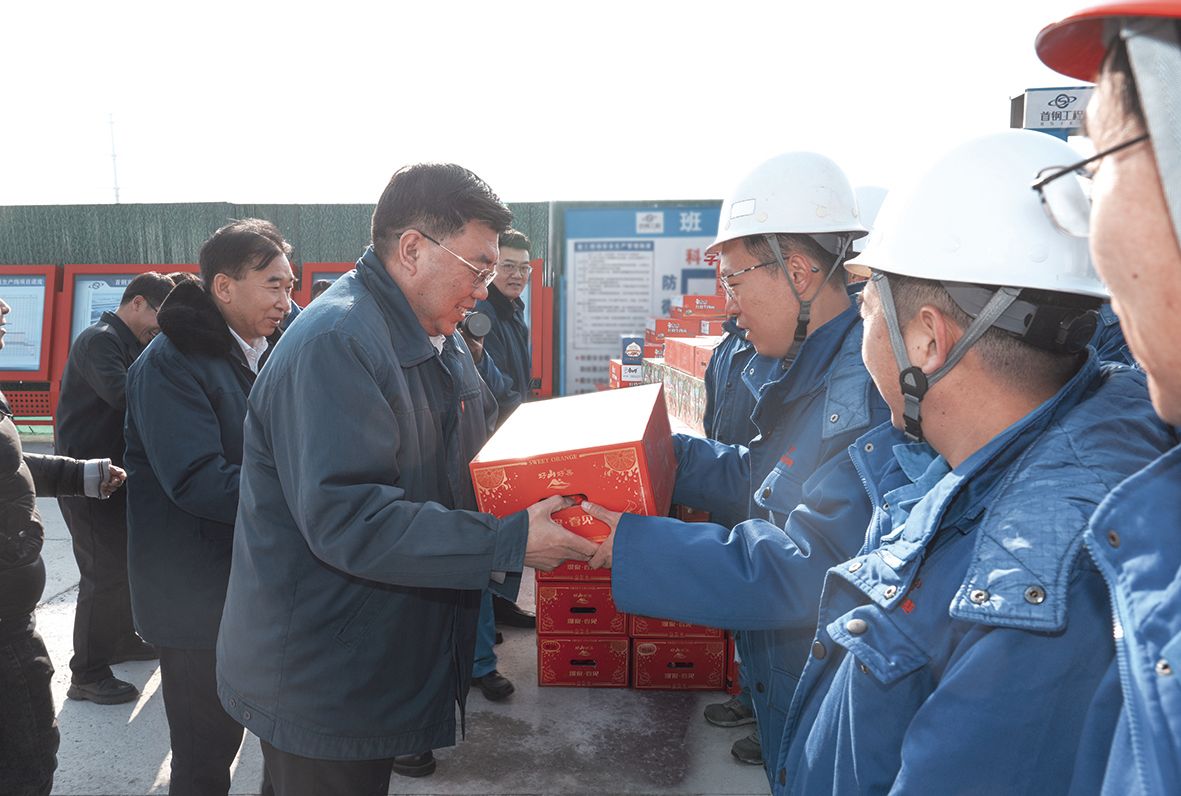 “谢谢大家”“新年快乐”“马年吉祥”……一声声问候、一句句祝福,热情温暖的话语传递着集团党委对职工的深情关怀。12日上午,集团领导来到首钢京唐重点项目施工现场、中厚板集控中心、技术中心,与一线职工深入交流,细致了解他们的生活、工作与节日安排情况,仔细听取重点项目进展、第四大战略产品推进、技术创新重点工作。赵民革对首钢京唐在技术创新、产品结构调整、数字赋能、绿色发展方面取得的成绩给予充分肯定,勉励大家要在提升竞争力、创新力、影响力上下功夫,积极跟踪拓展海外市场,争做行业的领航者。职工们深受鼓舞、充满信心,表示新的一年将立足岗位、勇挑重担,努力在新征程上展现新作为。