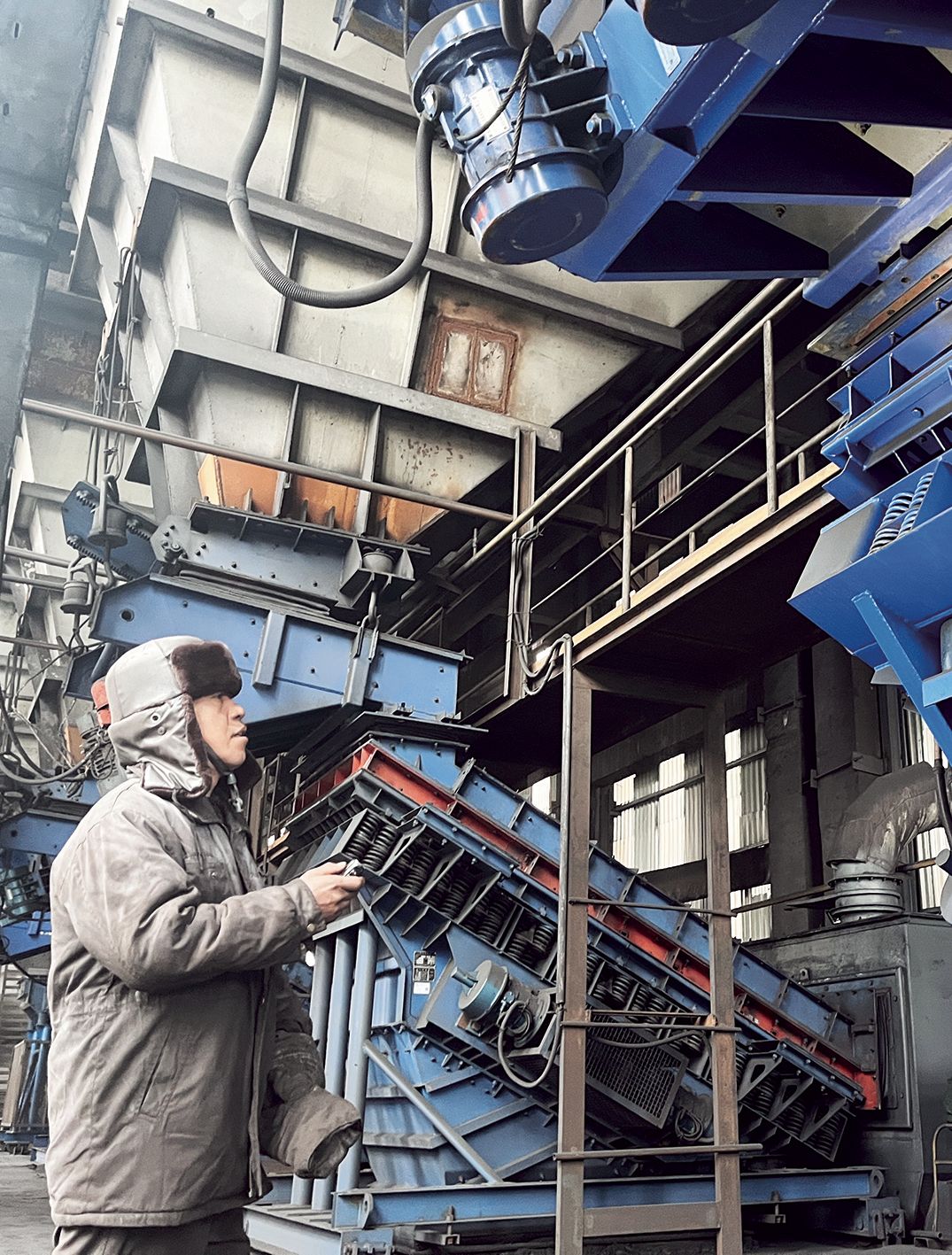 转战三高炉槽下区域,上料班李洪羽和同事们正在进行日常巡检。这里的巡检路线覆盖14个矿筛、6个焦筛和10余条皮带。一趟一小时,一个班至少三趟,再加上每天两次的炉顶检查,6个多小时都要在室外度过。“炉顶距地面75米,四面透风,站5分钟就能冻透。”李洪羽说。由于低温导致料仓内易产生冻块和板结料,他们就用钎子捅、用火烤,还要紧盯液压站油位、油温、油压,检查电机电缆和轴承瓦座是否正常,查看焦筛上部的反粉溜槽是否堵塞。凛冽的寒风中,他们的脸颊被冻得通红,但每一个巡检动作却一丝不苟,不放过任何一处安全隐患。
