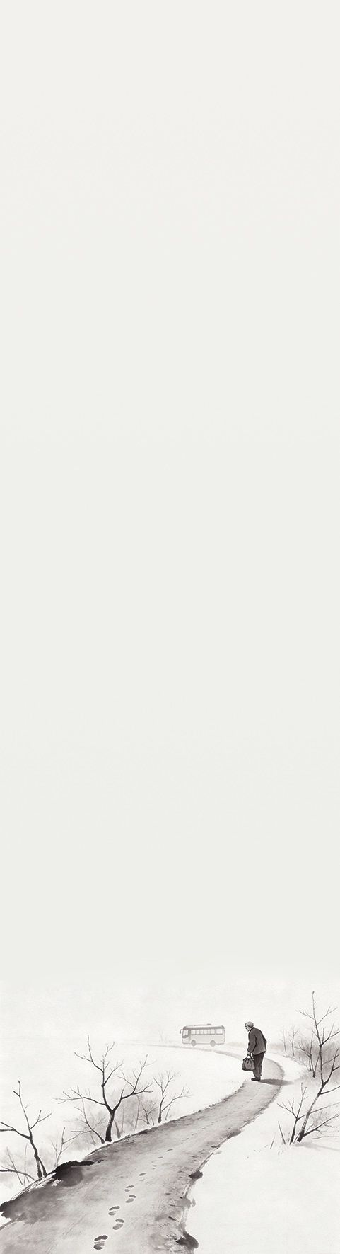 后来我去当兵,再后来在外地工作、成家,有了自己的孩子。每次携妻带子回去探望,离开时,父亲还是送我们去等班车。他还是抢着拎那些大包小包,还是边走边嘱咐:好好工作,不要牵挂家里。只是这一次,我不再逃避了。我回过头去,找他的目光。那目光里全是不舍,我忍着泪冲他笑:“爸,我们走了,过些日子再回来看您,您回去吧。”他往回走了几步,又转过身来看我。